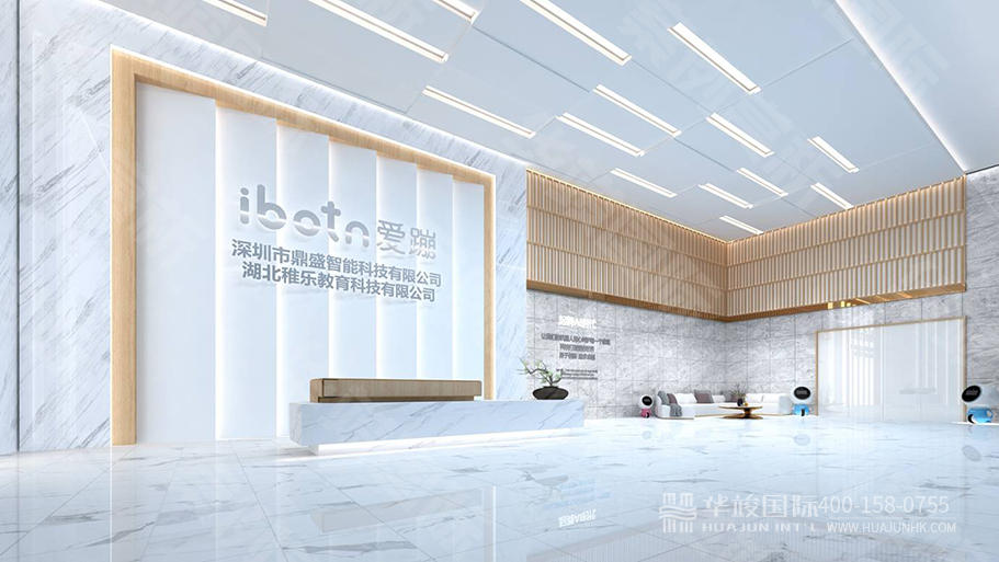 序廳以白色為基調(diào),寓意ibotn愛蹦投身智慧幼教的初心純凈美好。