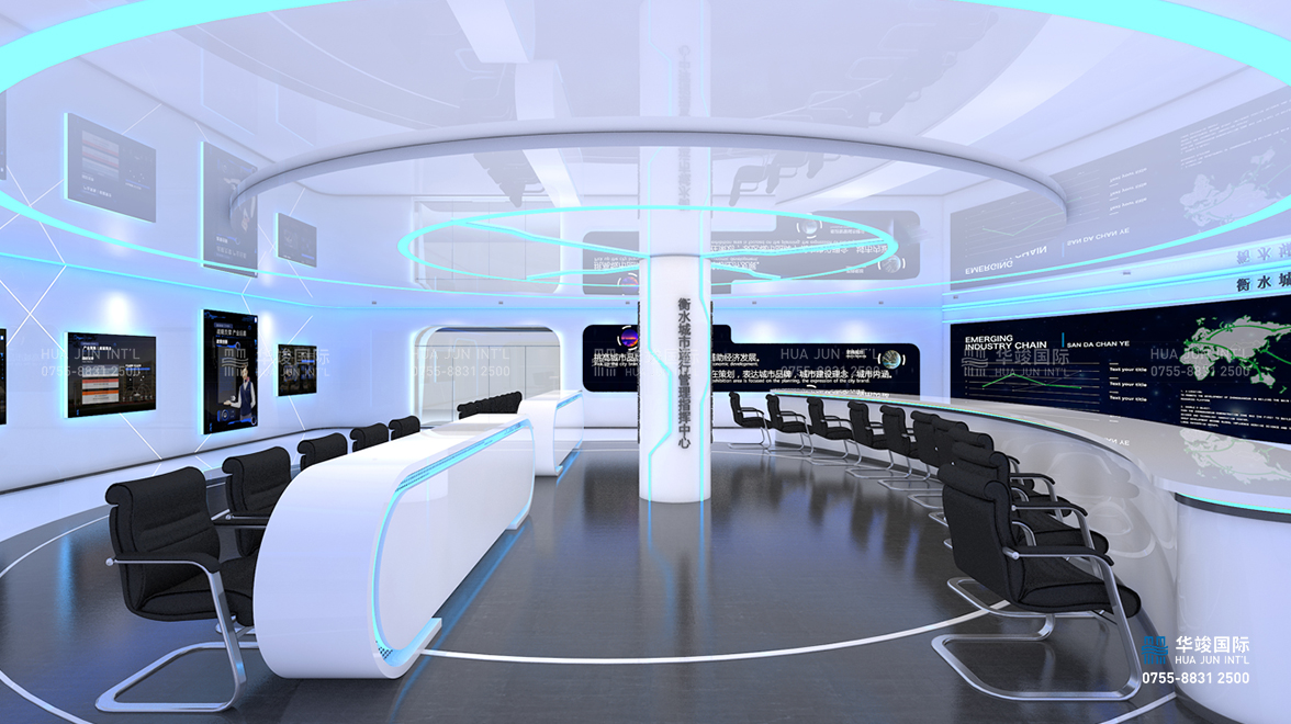 衡水智慧城市運行管理中心展廳主要由入口形象區(qū)、指揮大廳、大會議室構(gòu)成,旨在打造促進衡水市招商引資、輔助經(jīng)濟發(fā)展、提升城市品牌形象的展示窗口。