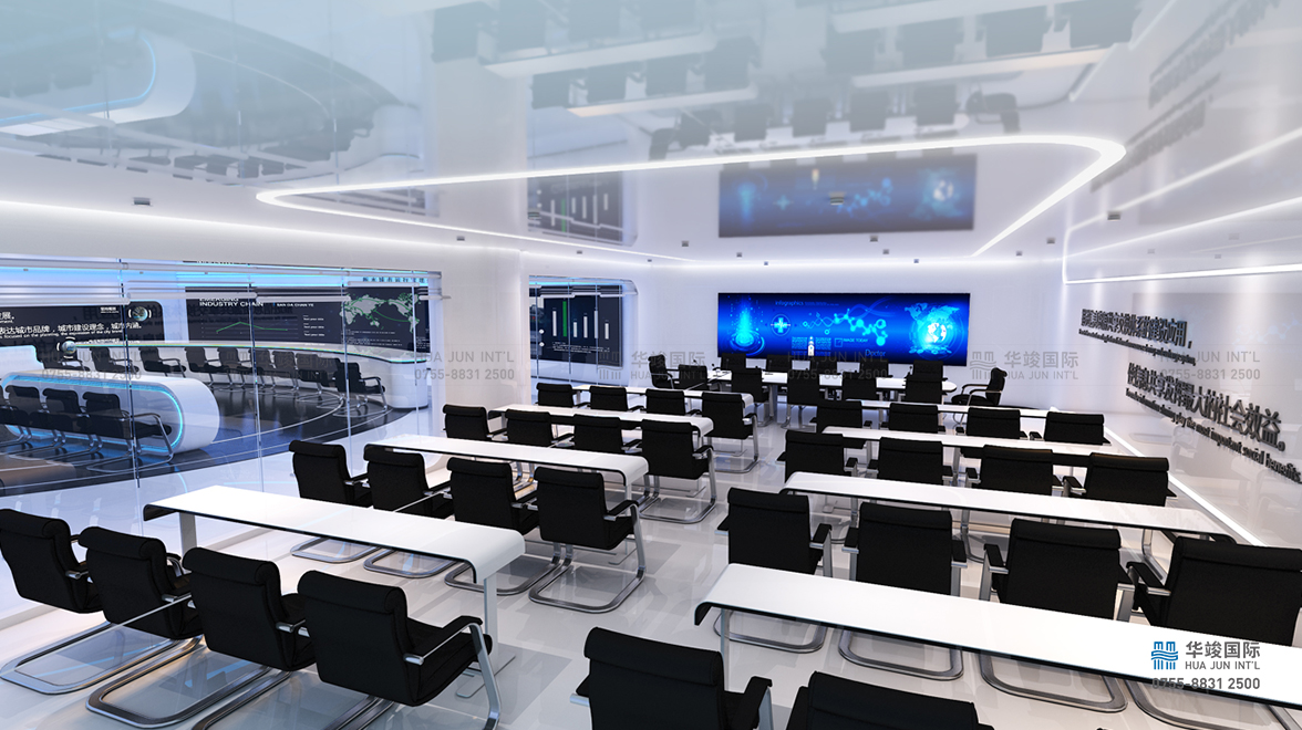 指揮大廳設(shè)置大屏幕展示,整體設(shè)計以流線型元素為主,更具前衛(wèi)感,科技感。主要用于城市運行管理,應(yīng)急指揮,領(lǐng)導(dǎo)觀摩,參觀演示,這里也是信息化建設(shè)成果展示的窗口。其設(shè)計最大程度利用現(xiàn)有空間,并結(jié)合智能展示設(shè)置操作臺,可供多人操控屏幕,指揮工作。