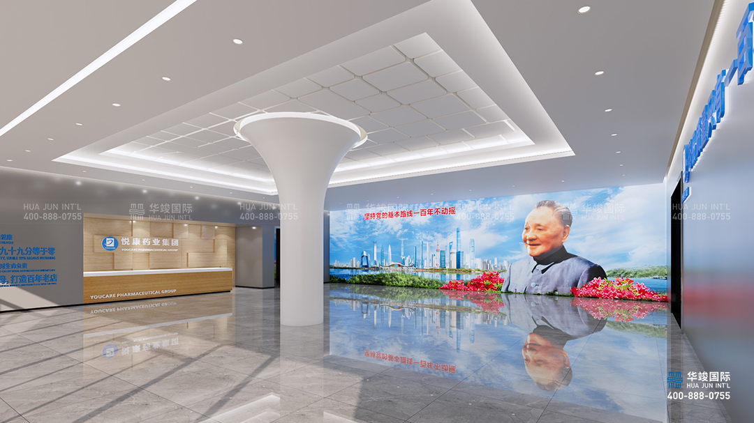 悅康藥業(yè)集團(tuán)展示中心于2018年竣工,當(dāng)時(shí)正值改革開放40周年。為此,我們?cè)谇皬d專門設(shè)立了鄧小平同志的專題影像展示區(qū),以長(zhǎng)達(dá)十三米的數(shù)字LED大屏講述改革開放總設(shè)計(jì)師鄧小平的傳奇人生,表達(dá)悅康人的感恩之心、致敬之意。
